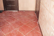 Плитку кладут на пол от угла к двери. За одни раз на 1 кв. м. нужно нанести зубчатым шпателем клей. В ходе работы нужно постоянно проверять лежат ли плитки в одной плоскости. Нужно постоянное совпадение уровня рядов. Если вы обнаружили несовпадение, то плитку надо снять и выровнять ее.
