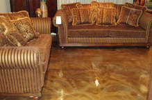 Делая ремонт в квартире, пришлось решать проблему старого деревянного пола. Решили сверху постелить ковролин. Для того, чтобы в будущем доски не начали проявляться сквозь покрытие, прибили к полу оргалит. Расстелив ковролин на пол, дали ему разлежаться несколько дней, и только после закрепили плинтусами. Раньше, при ходьбе слышался скрип пола, а с появлением ковролина он исчез. Благодаря хорошей звукоизоляции, которую обеспечивает ковролин, мы перестали слышать соседей снизу. Один недостаток такого покрытия — оно очень впитывает в себя грязь. Каждодневные уборки стопроцентного результата, увы, не дают.