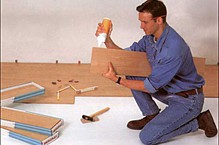 Кроме того, доски при укладке плавающим способом могут соединяться между собой с помощью поворотно-углового замка. Поскольку на заводе уже покрытые лаком паркетные доски профилируют, поверхность пола после их укладки выглядит как единое целое. Даже при укладке, выполненной против света, места стыковки досок остаются незаметными. Одним из преимуществ данного способа укладки является и то, что если в дальнейшем возникнет необходимость в замене поврежденных досок, есть возможность выполнить демонтаж пола. При толщине паркетной доски в 1,4 см специалисты рекомендуют выполнять ее укладку только плавающим способом.